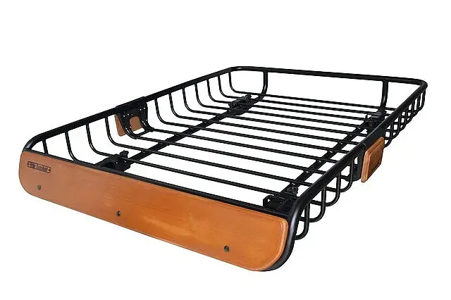 インダストリアルなスチール製ルーフラックに、自然のぬくもりを感じるナチュラルウッドをセット。