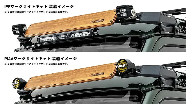 前面のウッドパネルが目を引く、ワークライトマウント。